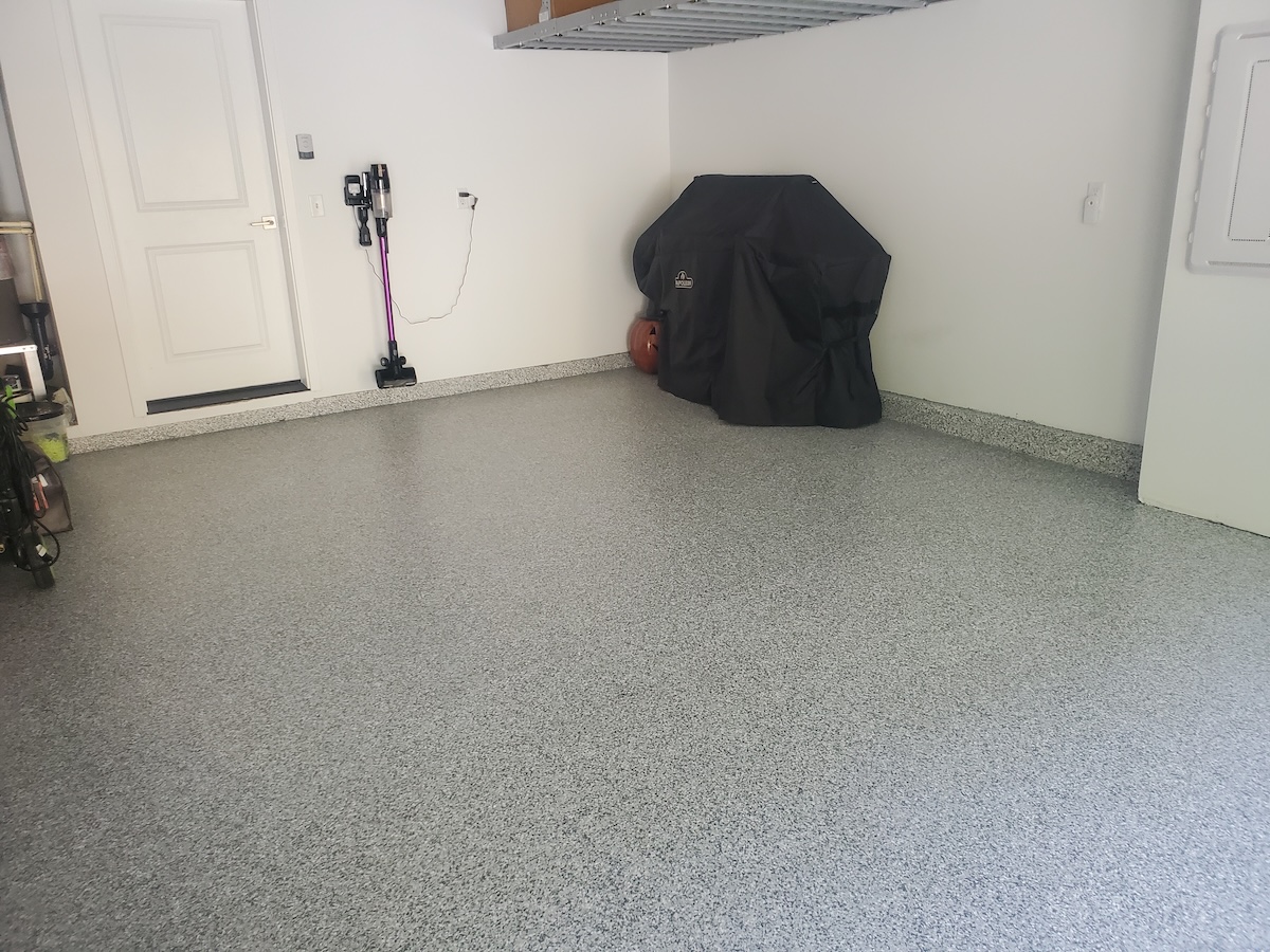 A sleek Nightfall epoxy floor, custom cabinets, and overhead racks turned Spencer’s Mercer Island, WA garage into a clean, organized extension of the home.