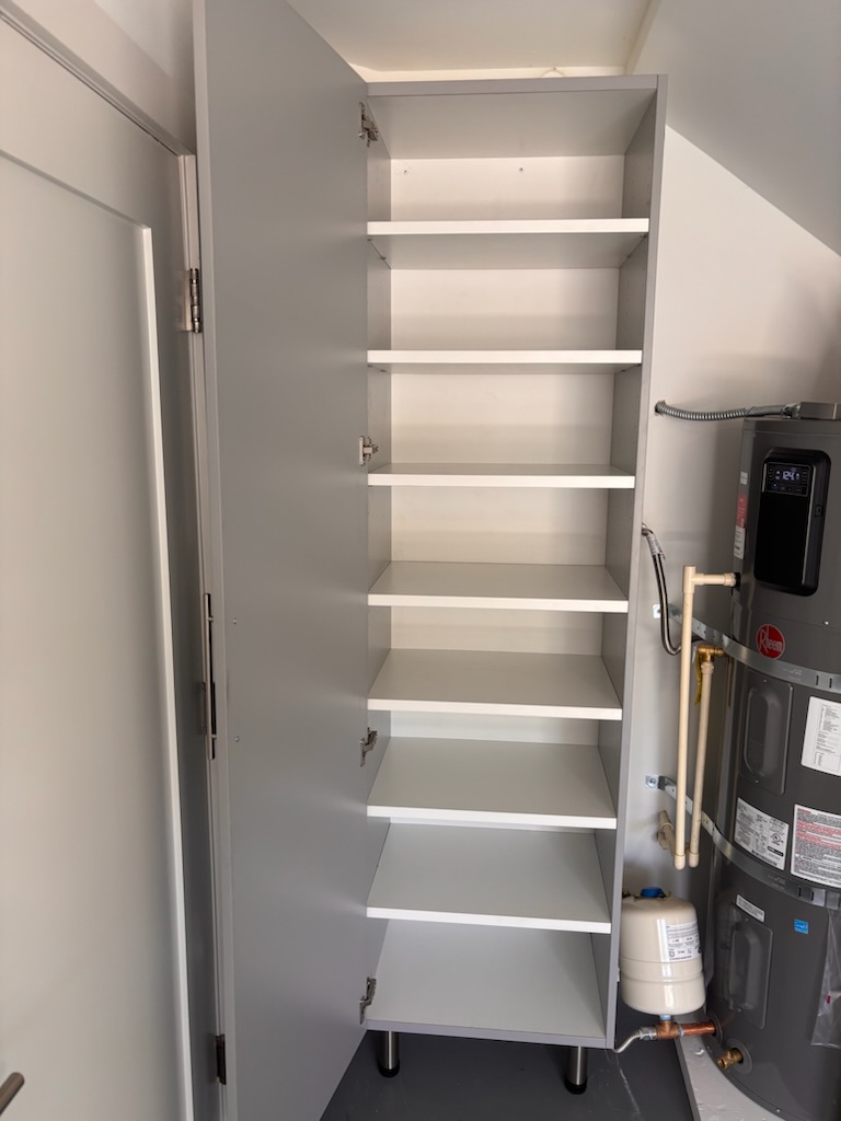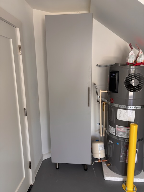 Austin’s Seattle garage got a fresh new look thanks to a clean, efficient storage upgrade. The standout features? A sleek inverted shelving system paired with a Breakwater custom cabinet. Together, these elements created a stylish yet highly functional space that helps keep the garage organized while looking sharp.